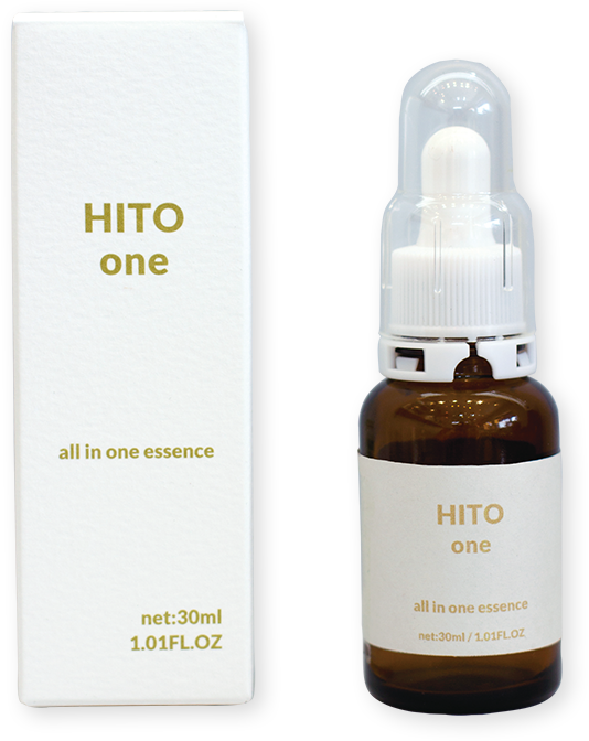 HITO oneにHITO 20を1〜2滴混ぜて使うと保湿力とエイジングケアが1番効果的に補えます。